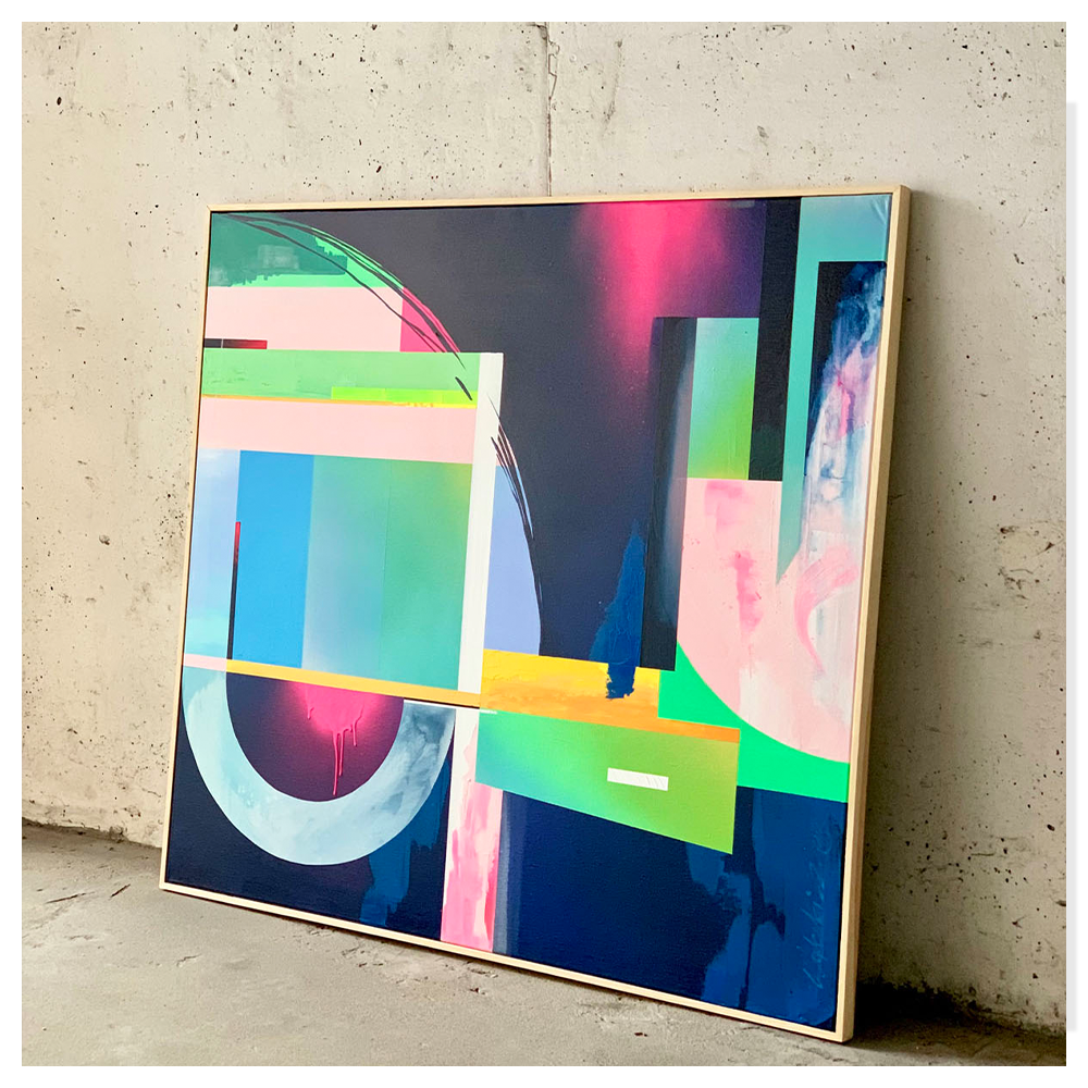 Format i proporcje sprawiają, że praca świetnie odnajduje się zarówno w nowoczesnych wnętrzach prywatnych, jak i w przestrzeniach biurowych czy komercyjnych. Rama typu floating dodaje całości elegancji i podkreśla kolekcjonerską jakość obiektu.