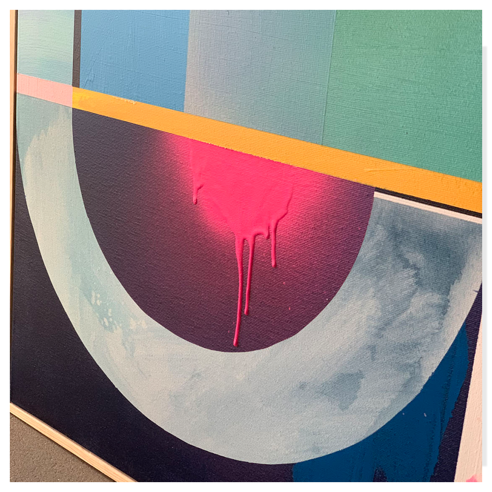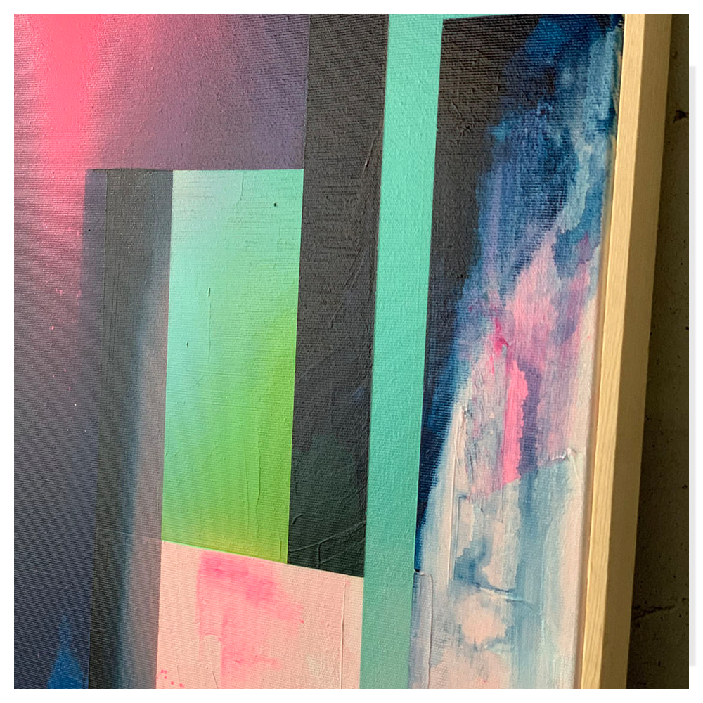 Zestawienie barw: szmaragd, fiolet, granat, jak drogi kamień ukryty pod ziemią nadaje kompozycji szlachetny, wyważony charakter. Kolory pracują tu bardziej jak światło i cień niż jak klasyczne plamy barwne, dzięki czemu obraz zmienia swój odbiór w zależności od otoczenia.