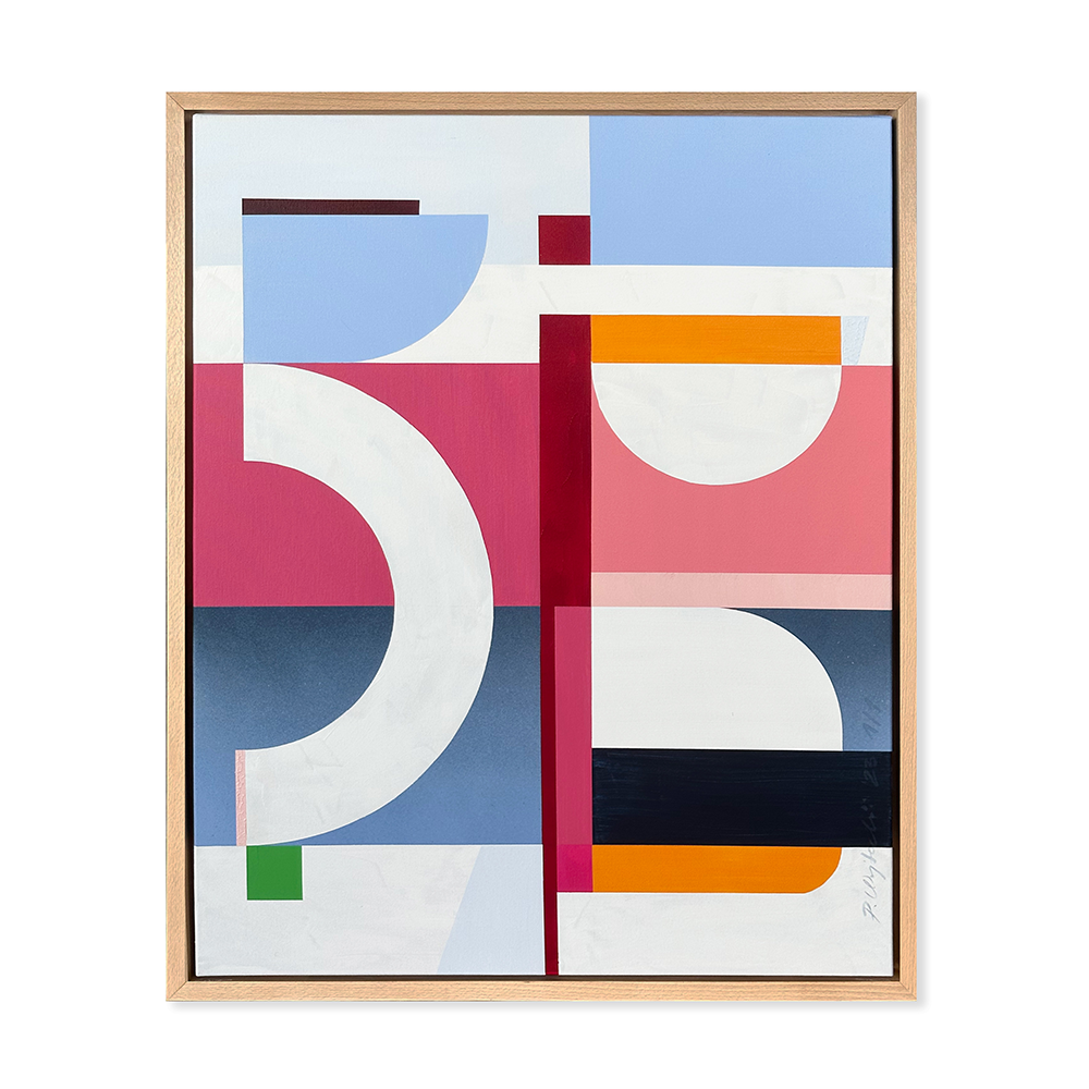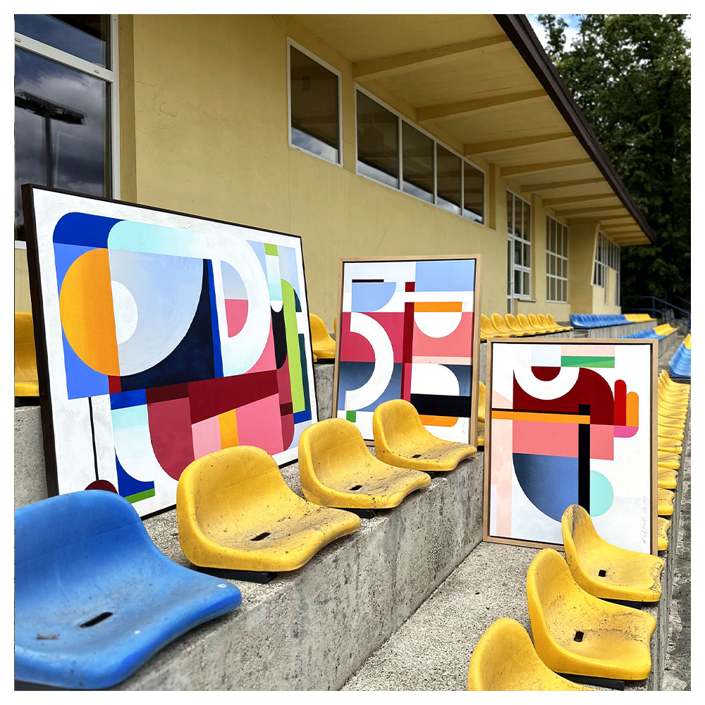 Madrid (Series) to cykl obrazów inspirowany rytmem, architekturą i kolorystyką Madrytu — miasta, w którym porządek urbanistyczny miesza się z południowym temperamentem i ciepłem materiałów. Prace z tej serii są myślane bardziej jak konstrukcje niż ilustracje: opierają się na precyzyjnych podziałach przestrzeni, rytmie form i świadomej dyscyplinie kompozycyjnej charakterystycznej dla abstrakcji geometrycznej.