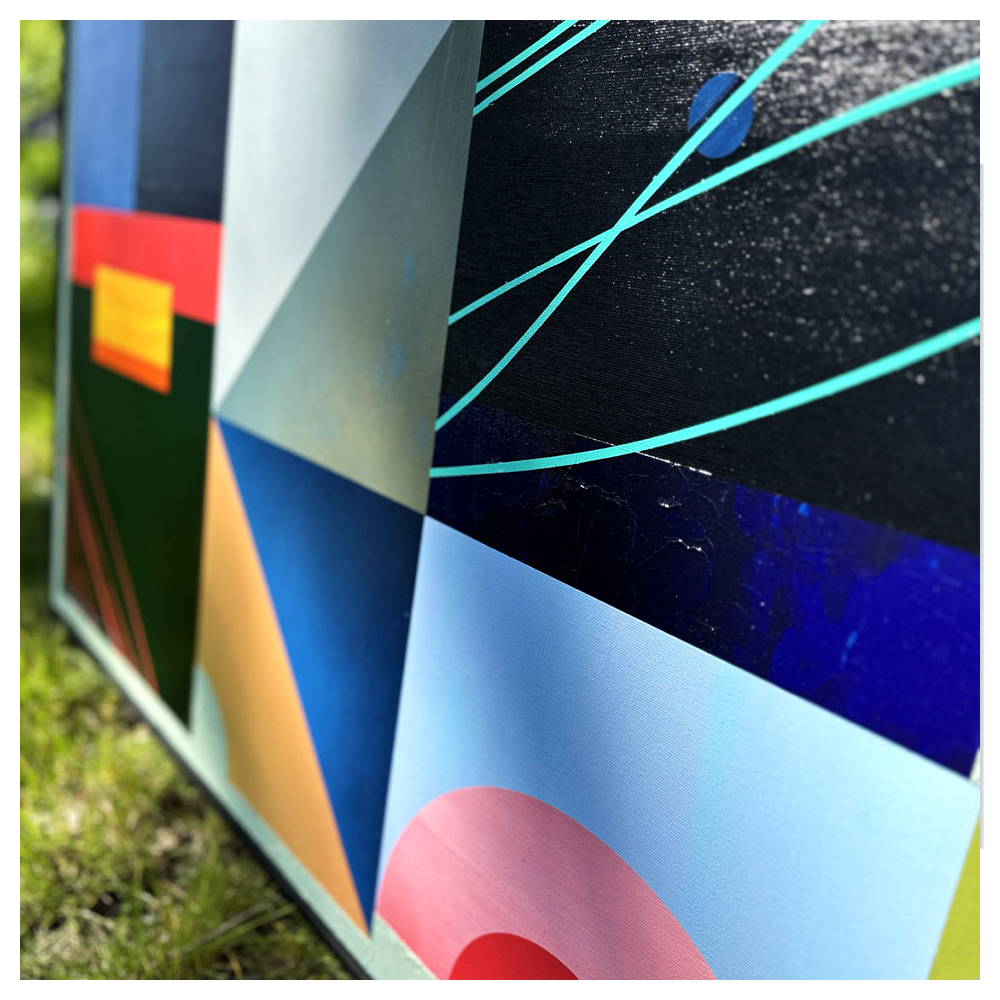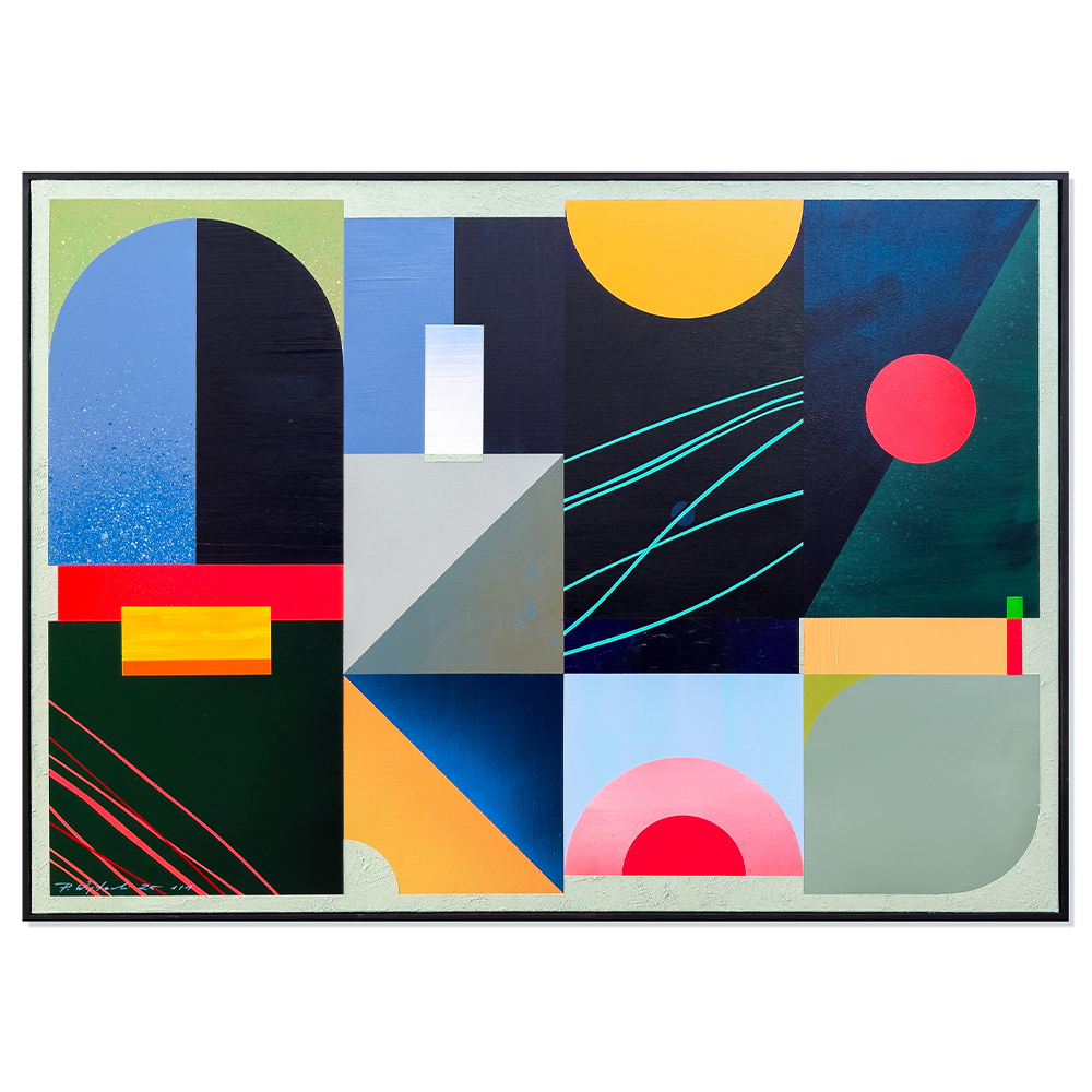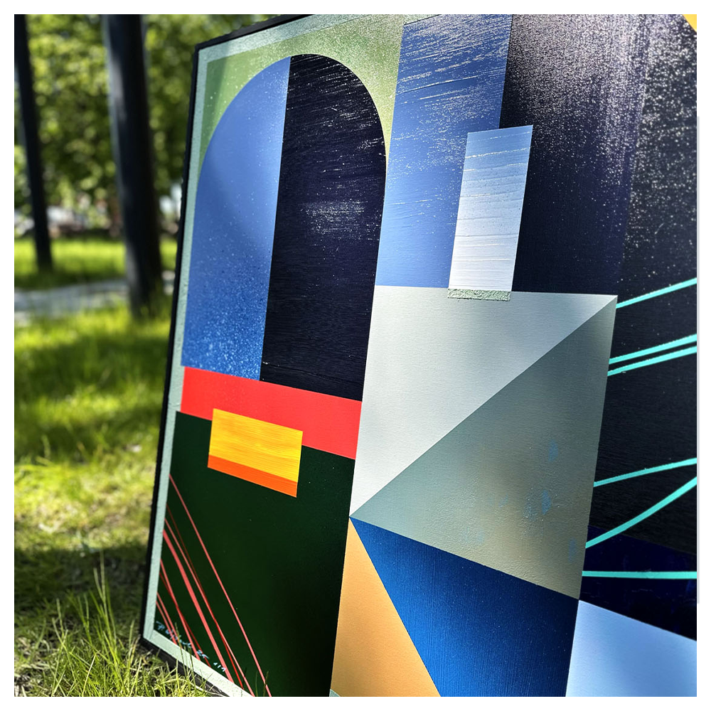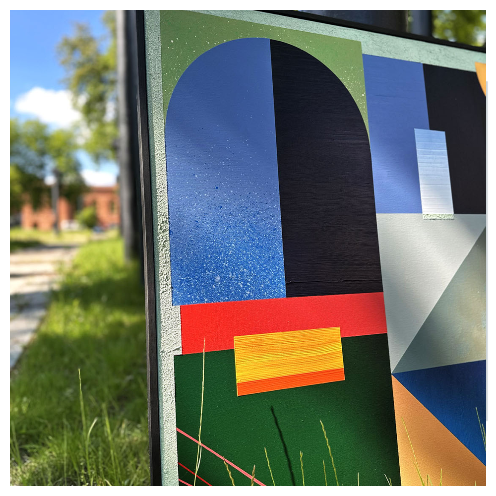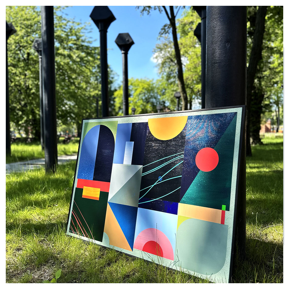 Pine Ember to obraz, w którym punktem wyjścia jest idea porządkowania chaosu poprzez formę i kolor. Inspiracje zawarte w tej pracy nie są opowiedziane wprost – zostały przełożone na język abstrakcji geometrycznej, gdzie znaczenie budują relacje między płaszczyznami, rytm podziałów i napięcia kompozycyjne.