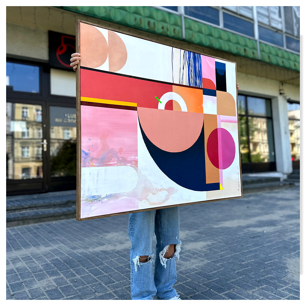 Ruby Strike to obraz, który bardziej się odczuwa, niż analizuje. Jego siła nie wynika z dosłownego przekazu, lecz z relacji między kolorem, skalą i rytmem form, charakterystycznych dla dojrzałej abstrakcji geometrycznej.